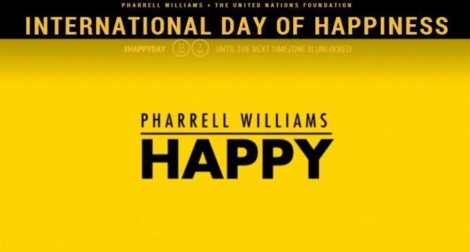 Pharrell Williams, nominado a los premios Oscar por su canción ‘Happy’, está colaborando con la Fundación de las Naciones Unidas y ha creado el portal oficial del Día Internacional de La Felicidad, activo en España desde las 12:00 horas de hoy.