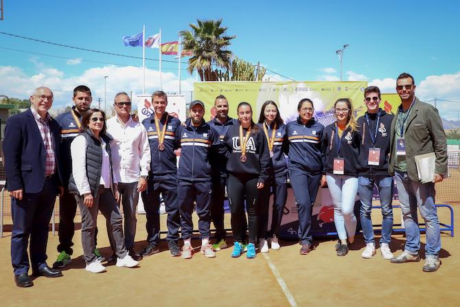 En tenis, los resultados de la Universidad de Alicante han sido dos medallas de bronce conseguidas por Lola Candela y Lucía Hita, en dobles femeninos, y Alfonso Costa y Cristian Silvestre, en dobles masculinos.