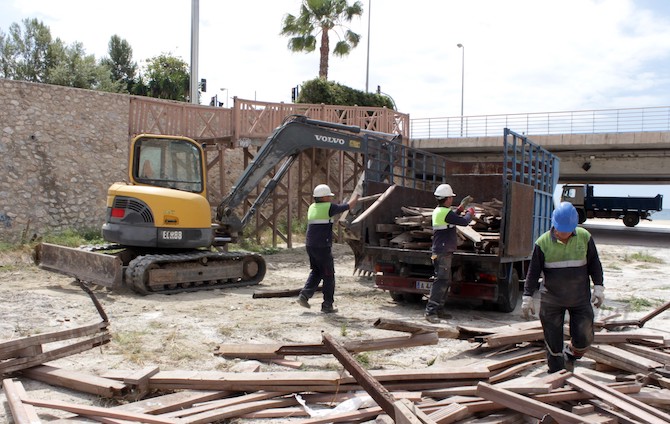 A partir de hoy van a estar trabajando para poder llevar a cabo todo el desmontaje de toda la infraestructura de madera, que va a ser retirado. Con el desmontaje de la pasarela se atiende una reclamación de los vecinos de la zona, que se completará en un plazo breve de tiempo con el inicio de las obras para su sustitución por una nueva pasarela de acceso a la playa de la Albufereta.