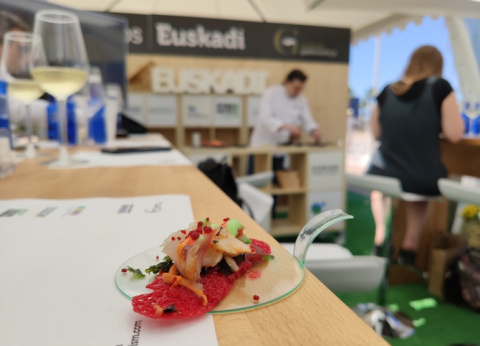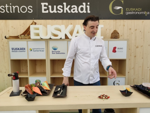 La gastronomía será una de las protagonistas este fin de semana en la acción promocional de Euskadi en el Puerto de Alicante. En la presentación a los medios, el chef vasco Mikel Fiestras ha llevado a cabo un showcooking con dos de los pintxos finalistas en el Campeonato de Pintxos de Euskadi, Navarra e Iparralde. Un adelanto de lo que se ofrecerá a los alicantinos hasta el domingo.