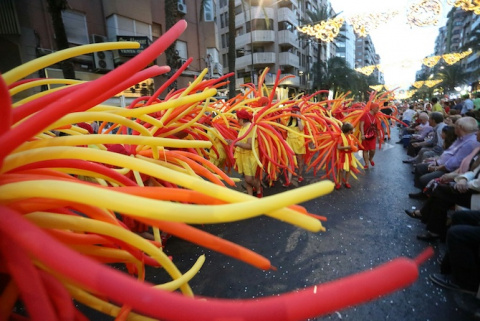 Desfile del Ninot, en la Rambla de Alicante.Miles del foguerers y barraquers han participado esta tarde en el tradicional Desfile del Ninot de Alicante, que ha sido seguido por multitud de personas en las principales calles de la ciudad.