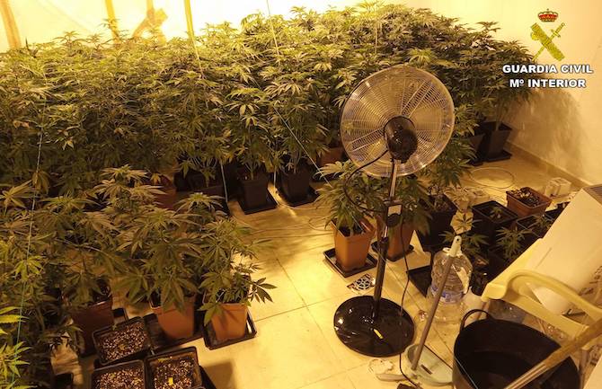 En una inspección, los agentes hallaron en una de las alcobas del piso un cultivo 'indoor' con un total de 129 plantas de marihuana y 90 esquejes preparados para su plantación.