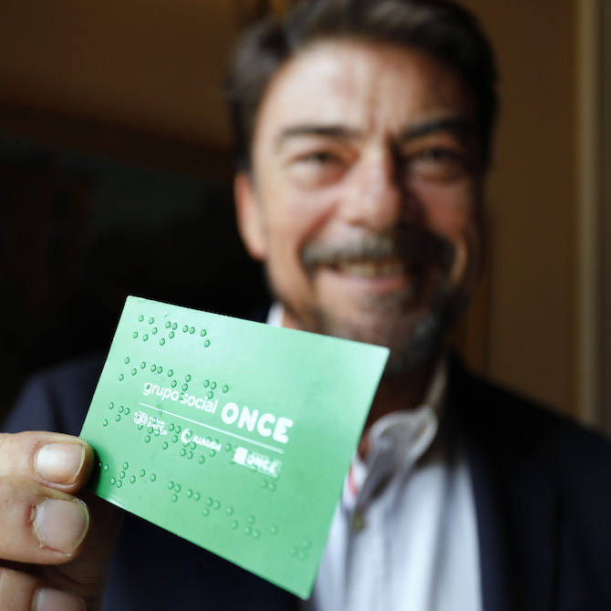 Las nuevas tarjetas de visita de la Corporación municipal de Alicante incorporan el lenguaje Braille.