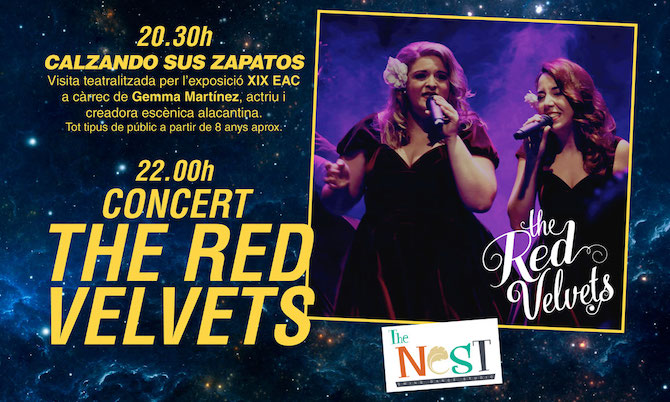 Tras la visita, la música swing llenará el MUA con el concierto de The Red Velvets, a las 22 horas. El grupo posee un amplio repertorio que engloba a los clásicos del Dixieland, Swing, Jazz y Doo-Wop, y hará un recorrido musical desde los años 30 hasta los 60, con las voces de Yasmin El Hakim (mezzosoprano) y Vira Leon (soprano), Enric Simó al piano, Pablo Fojo al contrabajo, Gustavo Luna a la batería, Pepe Zaragoza a la trompeta, Pedro Ortuño al trombón y Pierre León al saxofón y clarinete.