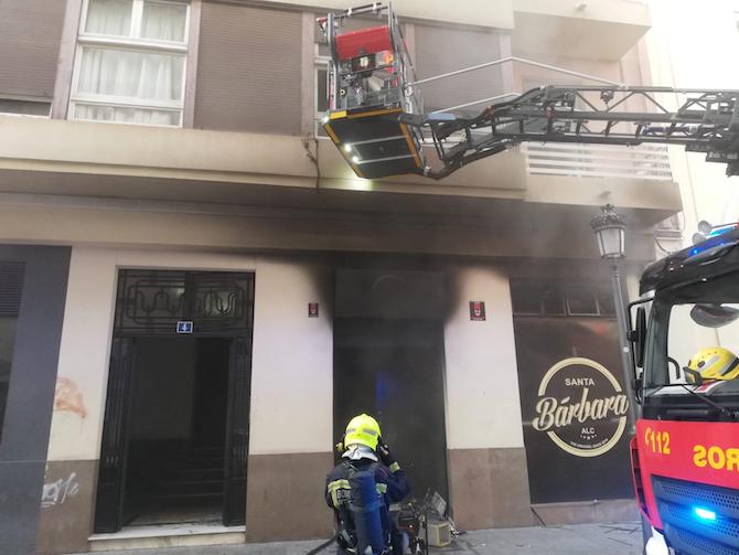 Un amplio operativo con más de 20 efectivos de bomberos y agentes de la Policía Local ha intervenido esta tarde en la extinción de un aparatoso incendio en el pub Santa Bárbara, situado en la calle Médico Pascual Pérez, en el centro de Alicante.