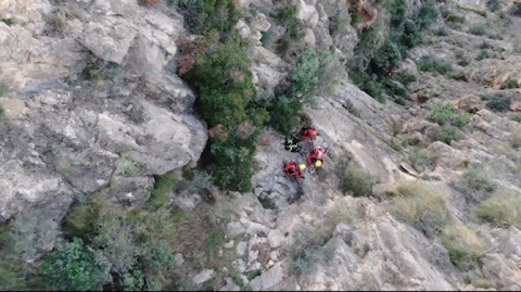 Los bomberos una vez que localizan al excursionista herido y logran acceder hasta él, comprueban su estado y verifican que les permite hacer un autosocorro y descenderlo hasta la zona donde han podido acceder las ambulancias para que sea atendido. Logrando bajarlo de forma segura y descender el rápel, junto con uno de los bomberos, desde la cima del barranco hasta la zona de acceso de las ambulancias.