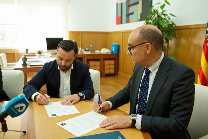 La firma de renovación del patrocinio se ha formalizado hoy en el despacho rectoral y ha sido rubricada por Manuel Palomar, rector de la Universidad de Alicante, y Ángel Pineda, CEO de la compañía. Al acto asistieron también Esther Algarra, secretaria General de la UA, Manuel Navarrete, subdirector Técnico de Deportes, Álvaro Martínez Luque, delegado de Secciones Federadas, y Olga Carrillo, directora financiera de la firma tecnológica alicantina.