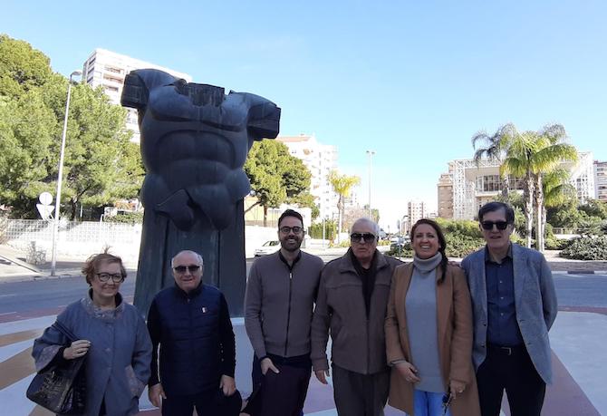 El concejal de Urbanismo del Ayuntamiento de Alicante, Adrián Santos, acompañado de un grupo de vecinos de la Albufereta, ha recorrido el entorno de La Isleta, tras las obras que han modificado la rotonda, y la nueva ubicación de la escultura conocida como el Torso de Agamenón.