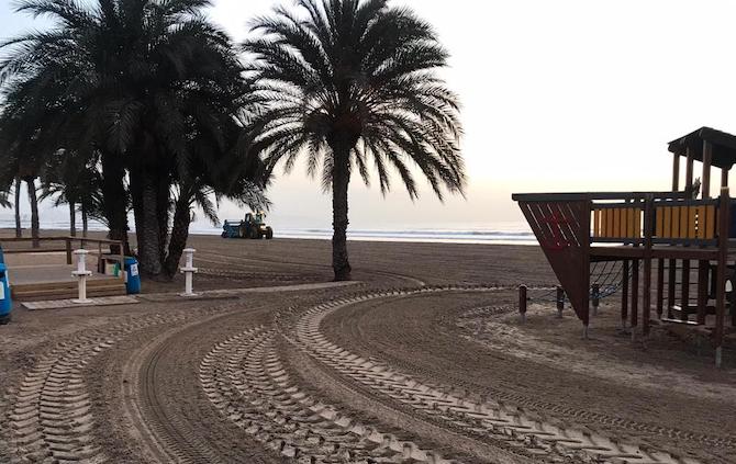El resto del Postiguet ya luce con buena imagen una vez las máquinas han hecho su labor. UTE Alicante, la concesionaria de la limpieza, mantiene activo la limpieza en toda la ciudad con baldeos y la retirada de residuos en zonas costeras hasta que se restablezca la normalidad.