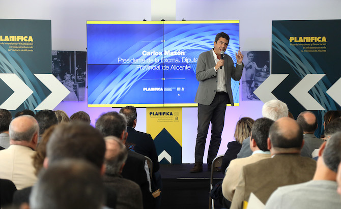 La Diputación de Alicante ha dado a conocer hoy ante más de 150 alcaldes y concejales el Plan de Inversiones y Financiación en Infraestructuras de la Provincia de Alicante (Planifica) en un encuentro celebrado en la sede del Consejo Regulador IGP Jijona y Turrón de Alicante. En el acto, el presidente de la Diputación, Carlos Mazón, y el diputado de Infraestructuras, Javier Gutiérrez, han presentado la mayor apuesta inversora de la institución dotada con cerca de 71 millones de euros dirigidos a los ayuntamientos. El plan se ejecutará entre los años 2020 y 2023.