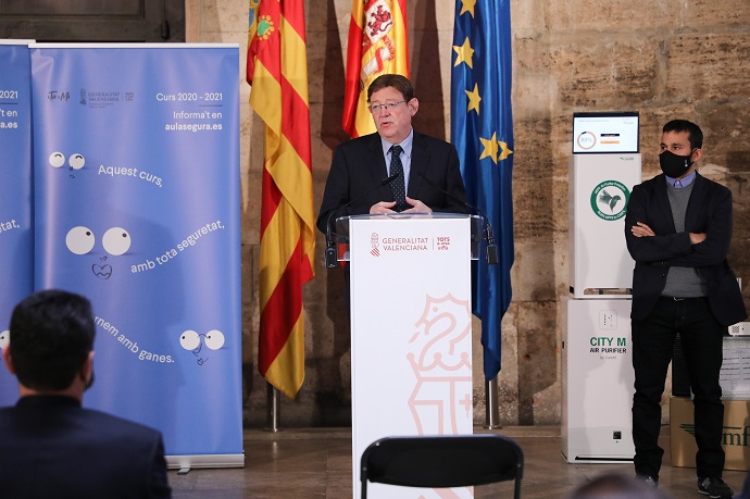 . El president de la Generalitat, Ximo Puig, ha anunciado este lunes el suministro de 8.000 purificadores para garantizar la adecuada ventilación de las aulas de los centros educativos de la Comunitat Valenciana.
