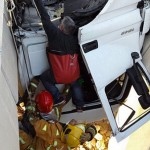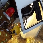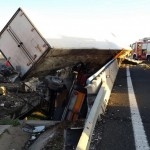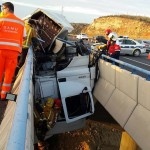 Pasadas las 07:00 horas un camión de gran tonelaje que circulaba por la A-7 colisionó con la mediana de la autovía por causas desconocidas, aunque la colisión pudo deberse al reventón de una de sus ruedas. Como consecuencia del fuerte impacto la cabina se separó del remolque y se desplazó por la carretera 30 metros, quedando encajada finalmente en el hueco del puente y suspendida a 15 metros de altura, según explica Ángel Botía, sargento de los bomberos de Elche, que participó en la coordiación del rescate. Cuando los bomberos llegaron al lugar de los hechos procedieron rápidamente a sujetar la cabina al camión y a la mediana empleando para ello cabestrantes y cadenas. Se trataba de evitar que la cabina se precipitara al vacio con sus dos ocupantes dentro. Una vez quedó asegurada por completo varios bomberos iniciaron el rescate haciendo rappel, tal como explica el sargento Botía. Si la cabina del camión se hubiese desplazado unos metros más, donde el hueco de la mediana se agranda y es de mayores dimensiones, la cabina habría caído con sus dos ocupantes en el interior y las consecuencias habrían sido mucho peores, según apunta el sargento Botía.