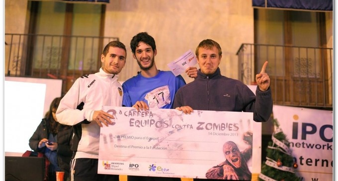 Los estudiantes de segundo curso de Ciencias Ambientales de la Universidad Miguel Hernández (UMH) de Elche Alvar Baptista, Jordi Blasco y Antonio López han sido los ganadores de la segunda ‘Carrera de Equipos contra Zombies‘. Alumnos y profesores de la carrera de Ciencias de la Actividad Física y del Deporte de la UMH han organizado esta competición.