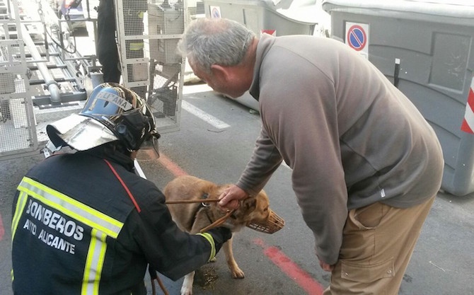 Un perro que llevaba cuatro días atrapado en la terraza de una vivienda del bario de Benalúa de Alicante ha sido rescatado por varios bomberos del Ayuntamiento.