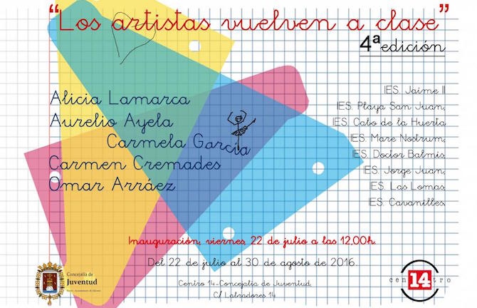 Cuando los y las artistas están cerca de la gente multiplican por dos o por tres todo. En el Centro 14 regresa la propuesta cultural y también Exposición “Los artistas vuelven a clase”. Un curso escolar en el que los alumnos y alumnas de la ciudad han estado cerquísima de artistas alicantinos que han acercado su arte a jóvenes estudiantes, su arte y su fuerza creativa para ayudar y sumar.