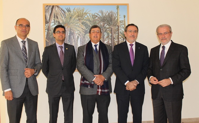 El rector de la UA, Manuel Palomar, (primero por la izquierda en la imagen) asumirá la presidencia en relevo de Esteban Morcillo, rector de la Universidad de València. El nuevo presidente de la CRUPV, que ya está cerrando agendas para una próxima reunión de coordinación y establecimiento de objetivos, ha destacado la necesidad de una conferencia de rectores cohesionada capaz de hacer un frente común ante las necesidades y los retos presentes y futuros del sistema universitario público valenciano. Entre las primeras acciones, que se materializarán antes de final de mes, se firmarán diferentes convenios de actuaciones conjuntas en materia de estudios para personas mayores, sostenibilidad y universidad saludable.