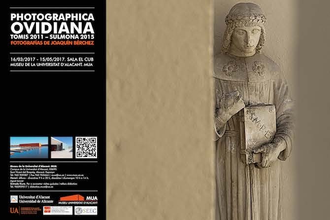 La muestra fotográfica del MUA sobre Publio Ovidio Nasón se inaugura el jueves 16 de marzo a las 18:00 horas de la mano de de la Facultad de Filosofía y Letras de la Universidad de Alicante. Es fruto de un proyecto llevado a cabo por Esteban y Joaquín Bérchez. La muestra será inaugurada por el decano de la Facultad de Filosofía y Letras, Juan Mesa, y por el director del Servicio de Cultura, Faust Ripoll.