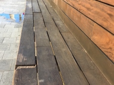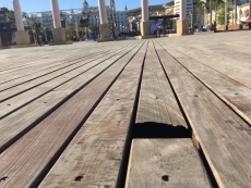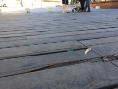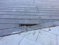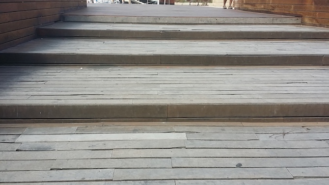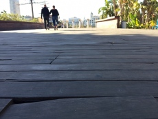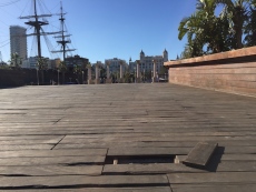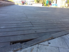 Sin embargo, los pasajeros de los buques se van a encontrar con un paseo del Puerto deteriorado e incluso peligroso para su integridad física. El acceso a la zona más turística de Alicante: la Explanada, la playa del Postiguet y la Marina Deportiva presenta un aspecto lamentable. El paseo del Puerto, desde donde se oberva la imagen más icónica de la ciudad, con el Castillo de Santa Bárbara en lo alto, necesita con urgencia una reforma. La superficie de madera está rota, con salientes, clavos y tornillos al aire, agujeros y lamas levantadas (ver imágenes).