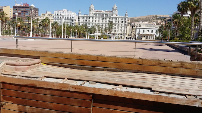 Echávarri los acusaba directamente de "degradar" la imagen de Alicante. "La imagen de la zona portuaria no es la que se merece una ciudad como Alicante", decía entonces Gabriel Echávarri, quien seguramente no imaginaba que tres años después ocuparía la Alcaldía. "Podemos observar el deterioro de las zonas de paso sin que nadie se preocupe por arreglarlas", criticaba el secretario local del PSOE. Y no sólo eso, Echávarri también alertaba de que los desperfectos suponían un "riesgo para los visitantes". Tres años después, Echávarri es alcalde y el deterioro del paseo del Puerto continúa ante la indiferencia de los responsables y el silencio de otras administraciones.