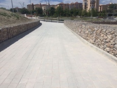 - Un itinerario rampa. Se ha conectado con una rampa ambas calles, que se inicia en el nuevo paso de peatones que comunica la calle Cuarzo con el parque (cota 80,00 m.) y salva el desnivel hasta la calle Turquesa, mediante una serie de plataformas en rampa de 3 m. de ancho y 9 m. de largo con una pendiente máxima del 8% en una longitud total de unos 100 m. hasta la zona estancial existente junto a la calle Turquesa.