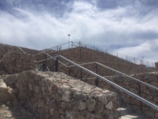 - Muros. La protección de los desniveles existentes y generados por el acondicionamiento de las escaleras, la rampa y la parcela se ha realizado con la implantación de elementos de contención de tierras mediante gaviones metálicos rellenos con material pétreo.