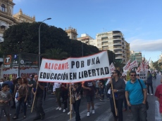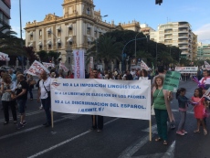 Miles de madres y padres han vuelto a pisar las calles de Alicante para defender su derecho a elegir la lengua en la que quieren que estudien sus hijas e hijos y contra las imposiciones del conseller Vicent Marzá. "La lengua ni se prohibe ni se impone", "Ante la imposición, oposición", "No a la imposición lingüística" y "Por una educación en libertad" han sido algunos de los lemas de las pancartas y carteles que se han exhibido en la manifestación.