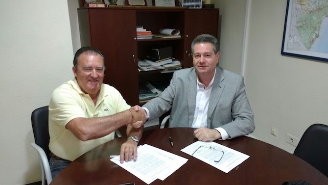 El diputado provincial de Agua, Francisco Sáez, ha firmado el acta de cesión de las obras de mejora de las redes de agua potable de Torremanzanas y Relleu con los alcaldes de estos dos municipios, Cristóbal Sala y Santiago Cantó, respectivamente.