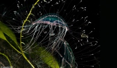 En el grupo de medusas "residentes" está la Avispa de mar (Carybdea marsupialis), presente en aguas poco profundas, de forma cúbica y color transparente azulado o blanquecino con cuatro tentáculos largos; y la Medusa cruz (Olindias phosphorica), hidromedusa transparente con cuatro líneas radiales blancas opacas. Con una umbrela rodeada de pequeños tentáculos de color azul o burdeos, "no se observan enjambres extensos en esta zona pero puede ser muy abundante localmente", detalla el investigador de la UA.