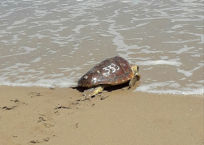 Hace unas semanas dimos la libertad a una de estas tortugas desde las dunas del Saler. Organizado por Catalana Occidente Compañía de Seguros. Con la intervención del ARCA. Fue emocionante ver cómo la tortuga se dirigía hacia el mar cuando la soltamos en la arena. Sin mirar atrás, sin dudarlo. Cuando las primeras olas llegaron a la orilla, empezó a aletear para perderse entre la espuma. Volvió a su medio natural, a su mar, a la mar. Con un número en su caparazón por si vuelve a ser vista, valorar su evolución y colaborar en su protección.
