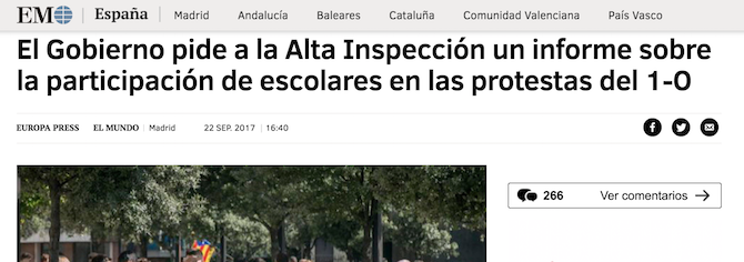Pero también hay cosas con las que no se juega. No se juega con el futuro de los menores, es decir, el nuestro. Entre “meme” y memo (o mema, por no discriminar) sólo hay una vocal de diferencia pero un abismo conceptual. Memo/a es lo mismo que estúpido, tonto, simple o lelo (aaaa). Es persona carente o con poca inteligencia y, como mínimo, eso son los que han consentido, animado o promovido la participación de escolares en el circo ringling de la ruptura. En la pista central Fortasec y su patrulla canina saltando aros de fuego sobre dos patas; a la derecha, los chicos de trapero y los autos locos de la Benemérita; y a la izquierda, un simpático desfile de escolares, menores de edad, ataviados con esteladas haciendo novillos y gritando consignas debidamente aleccionados. No se puede ser más ruin, rastrero e irresponsable.