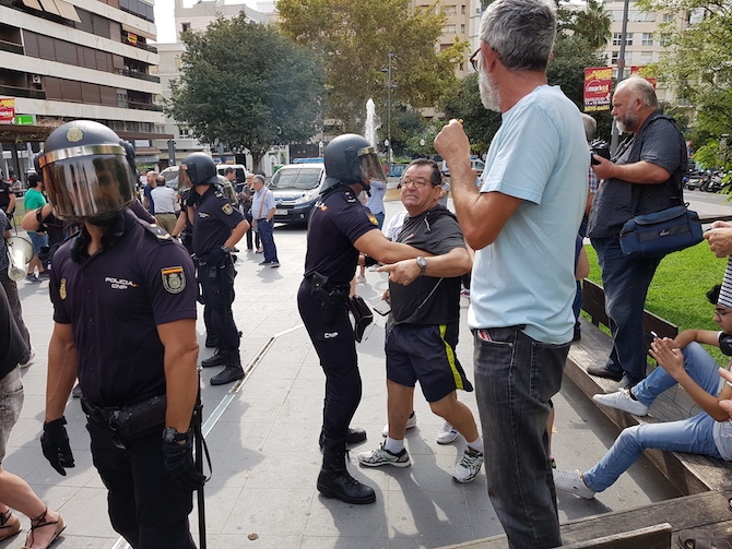 En la concentración se han registrado momentos de tensión cuando un reducido grupo de entre 10 y 20 personas ha gritado lemas en defensa de la unidad de España y contra el referéndum. Un amplio despliegue de la Policía Nacional ha garantizado la seguridad en todo momento al separar a ambos grupos.