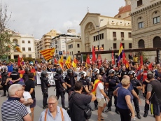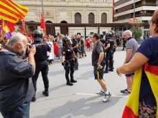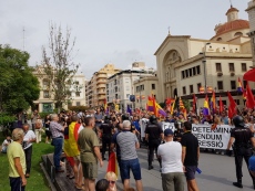 Una vez iniciada la concentración, un grupo de personas se ha situado frente a los concentrados y ha gritado lemas en favor de la unidad de España y contra el referéndum, como "Viva España" y "Yo soy español, español, español...". Esos gritos han sido respondidos por otros: "Vosotros fascistas, sois los terroristas" y "Cataluña libertad".