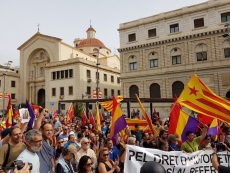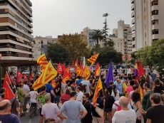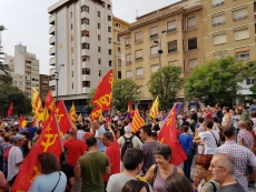 Durante la protesta se han gritado lemas en valenciano y español en defensa del derecho de autodeterminación de Cataluña. "Contra el fascismo y la represión, lucha y movilización", "Ni represión ni estado de excepción", y "España mañana será republicana" han sido algunas de las consignas coreadas por los concentrados.