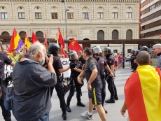 Algunos de los concentrados en defensa de la unidad de España se han acercado al otro grupo (en las imágenes), pero han sido rápidamente neutralizdos por los agentes de la Policía Nacional, que se han colocado estratégicamente entre ambos grupos para evitar que los enfrentamientos fueran a más.