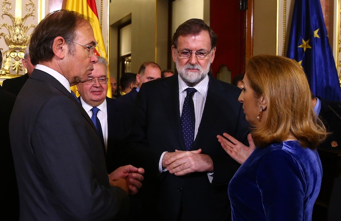 * Imagen: El presidente del Gobierno, Mariano Rajoy, conversa con la presidenta del Congreso de los Diputados, Ana Pastor; y con el presidente del Senado, Pío García Escudero,durante los actos conmemorativos del Día de la Constitución. (Pool Moncloa / Fernando Calvo)