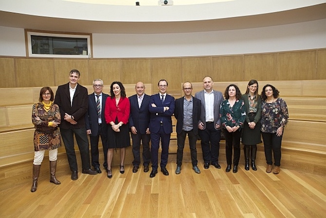 La toma de posesión del nuevo equipo decanal ha tenido lugar esta mañana en la Sala Multimedia del edificio de Rectorado y ha estado presidida por el rector de la UA, Manuel Palomar y la secretaria General, Esther Algarra.