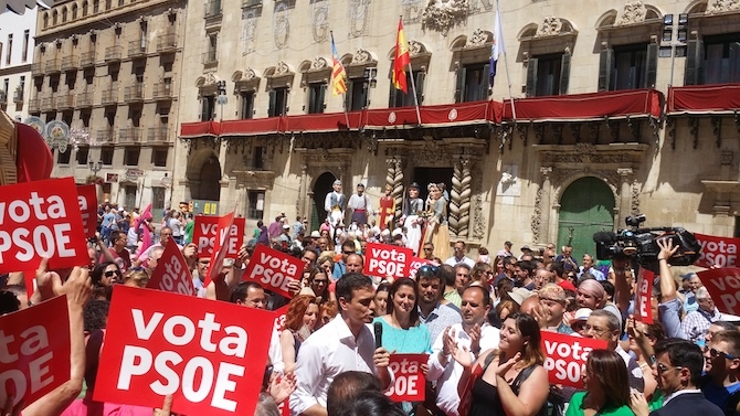 El guapo, listo y alto secretario del PSOE, conocido también como el Pívot Rojo, ha decidido realizar en este año, 52 asambleas abiertas por toda España, lleva 5 y la quinta, transcurrió en Elx, en el centro de congresos.