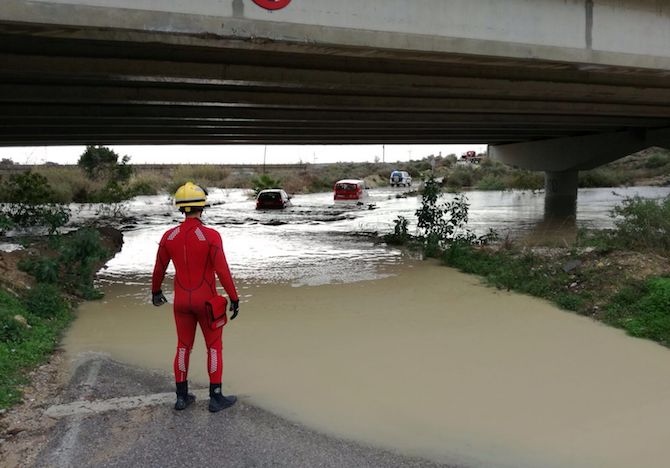 * Un vehículo arrastrado por las aguas en Alicante (Archivo).