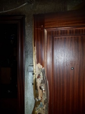 Uno de los grupos de bomberos inició las tareas de extinción por el exterior con varias líneas de agua y el vehículo escalera, y otro accedió al interior rompiendo la puerta que tenía muchos cerrojos y dificultaba su acceso.