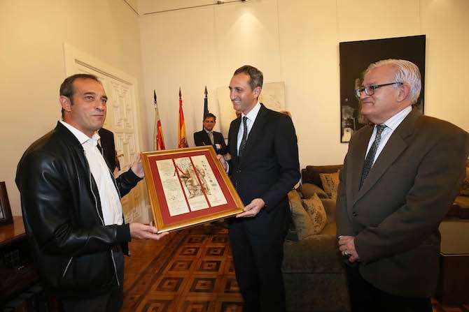El presidente de la Diputación de Alicante, César Sánchez, entregó ayer miércoles el VIII Premio Álvar Fáñez del Camino del Cid a la Asociación de Vecinos del Rabal de Villena.