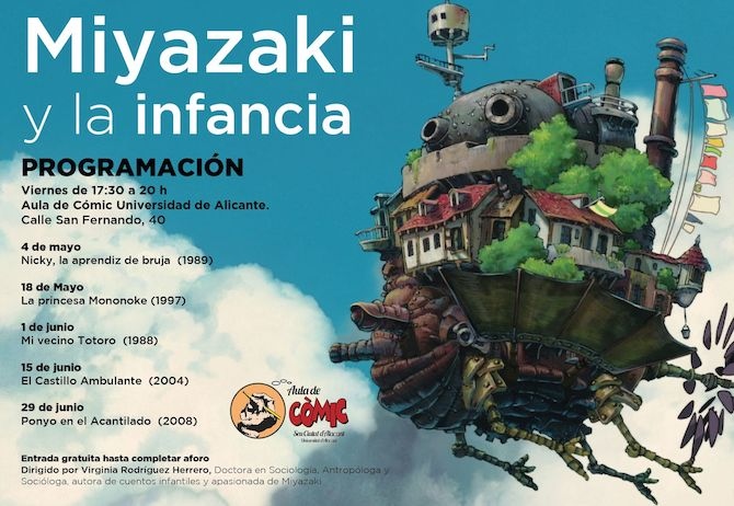 El Aula del Cómic de la Universidad de Alicante (UA) ha organizado un ciclo con el título "Hayao Miyazaki y la infancia". La iniciativa tiene el objetivo de acercar especialmente a los menores la magia del director y cofundador del Studio Ghibli Hayao Miyazaki.