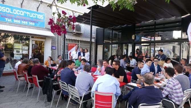 No me hubiera gustado estar en la piel de los peperos que de forma inocente y sin conocimiento de causa se dejaron caer por la zona de Alicante playas cuando se celebró el Café Ciudadano en una taberna de la zona. Afiliados y simpatizantes de Ciudadanos abarrotaron hasta tal punto la terraza del local que por momentos parecía que este había sido reservado únicamente para que los miembros de la formación naranja celebraran el encuentro.