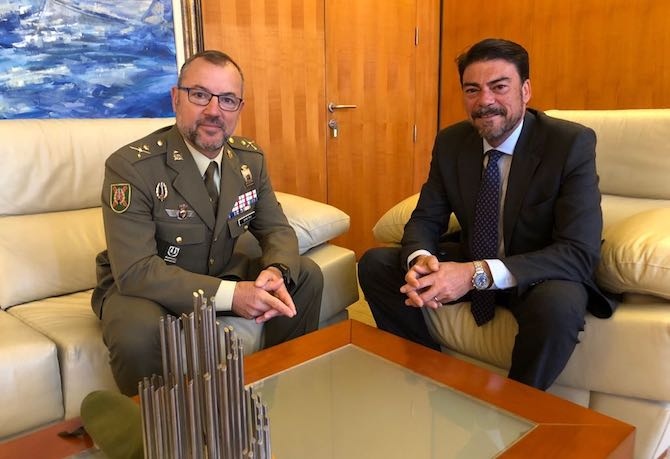 El alcalde de Alicante, Luis Barcala, ha recibido hoy martes en las dependencias de la Alcaldía al General Jefe de Mando de Operaciones Especiales (MOE) de Alicante, Demetrio Muñoz.