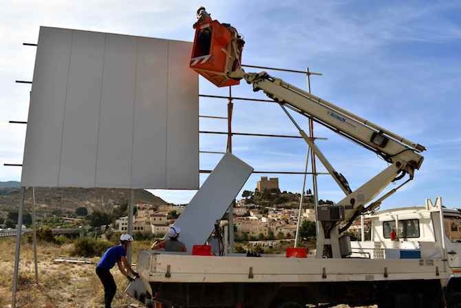 El Ayuntamiento de Petrer ha retirado esta mañana la gran valla de ganchillo que había colocado en febrero en la autovía A-31. El Ministerio de Fomento ha instado al consistorio a su retirada, bajo una sanción de hasta 300.000 euros
