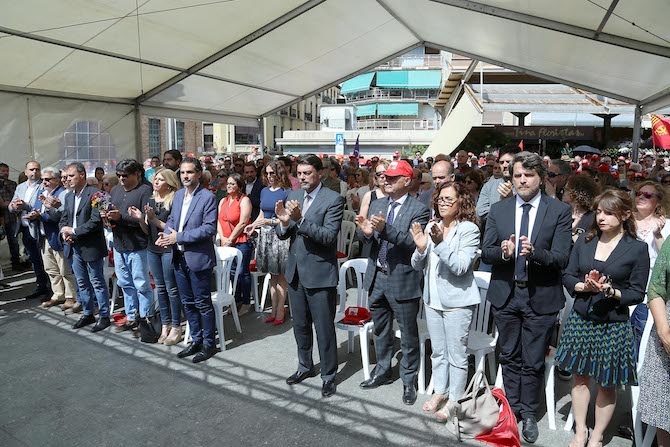 La plaza de las Flores del Mercado Central de Alicante ha acogido esta mañana el acto central de homenaje a las víctimas del bombardeo del 25 de mayo de 1938.