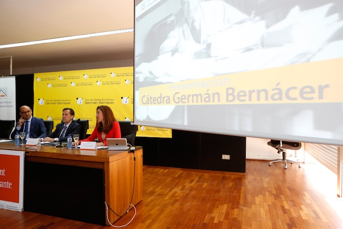 La Cátedra Germán Bernácer tiene como objetivo el desarrollo de un espacio de generación de ideas y de opinión, en el que poder analizar distintos escenarios económicos, jurídicos, empresariales y sociales que afecten a la provincia de Alicante, de forma que se puedan aportar soluciones e iniciativas prácticas y efectivas para el mejor desarrollo económico y social. Esfuerzo que también se centrará en continuar con el reconocimiento de la figura y obra del ilustre economista alicantino Germán Bernácer que da nombre a la cátedra.