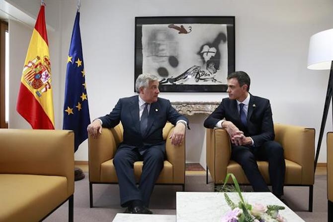 * Imagen: El presidente del Gobierno, Pedro Sánchez, y el presidente del Parlamento Europeo, Antonio Tajani, durante la reunión que mantuvieron en junio en Bruselas.