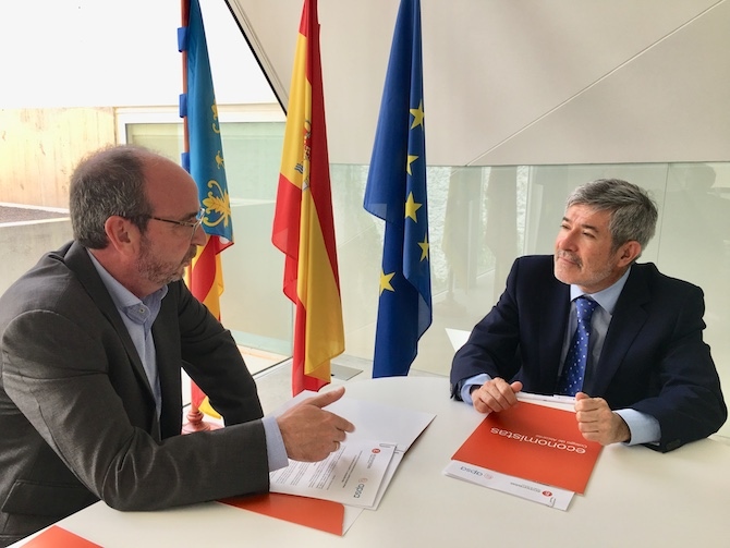 Ambas entidades han establecido un acuerdo marco, firmado esta mañana por el decano del Colegio de Economistas de Alicante, Francisco Menargues, y el gerente de APSA, Carlos Giner.