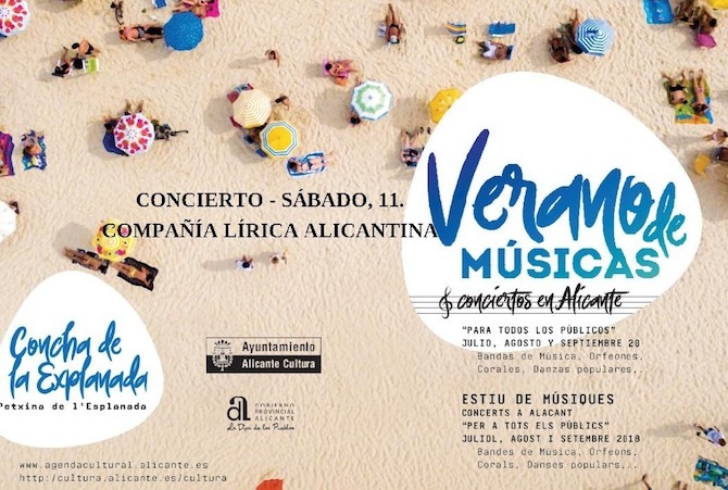 La Compañía Lírica Alicantina ofrece un concierto gratuito en la Concha de la Explanada el sábado 11 de agosto. El concierto comenzará a las 20:00 horas y es gratuito.