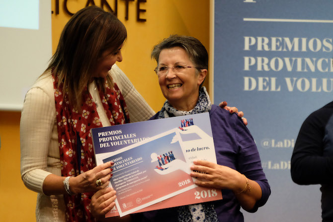 Durante la gala, presidida por la diputada de Familia y Ciudadanía, Mercedes Alonso, y que contó con la presencia del Padre Ángel, de Mensajeros por la Paz, se reconoció la trayectoria personal de la educadora Amaya Gómez, fundadora de la Asociación Anmag para la atención a menores y mujeres en situación de vulnerabilidad social, y de Fide Mirón, presidenta de la Asociación de personas con discapacidad de Ibi Adibi por su lucha para dar a conocer las denominadas enfermedades raras.